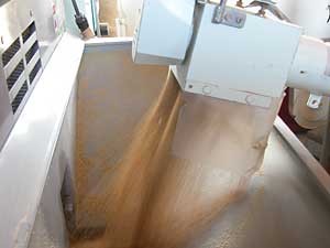 刈取った籾を乾燥機に入れる方法は、農家によって違います。袋に入れず、ダンプに直接積んで運び、それを機械を使って乾燥機へ入れるなど、あの手この手の工夫があります。